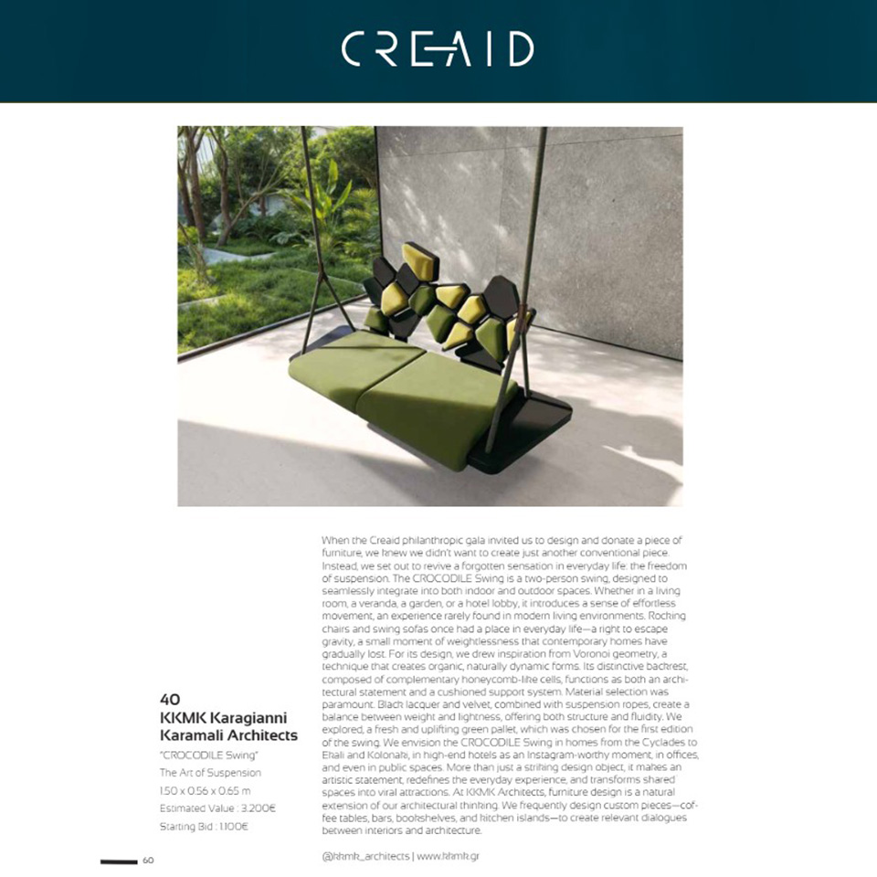 Read MoreSupporting CREAID’s vision, the Crocodile Swing was exclusively designed and donated by KKMK Architects for the “Masters of Interior” auction, held on April 2, 2025.